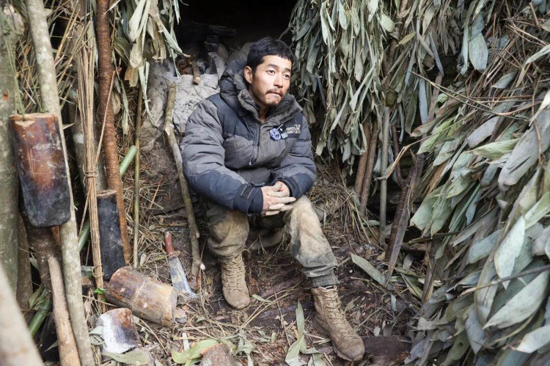 陌生的潮湿空气持续影响着他。下雨的时候,他摸到衣服袖子又湿又冰,以为是自己的庇护所漏水了。比赛开始好几天了,他一直把钻火的工具揣在腋下暖着,“睡觉的时候都暖着它”,但工具依旧太潮湿,钻不出火。
