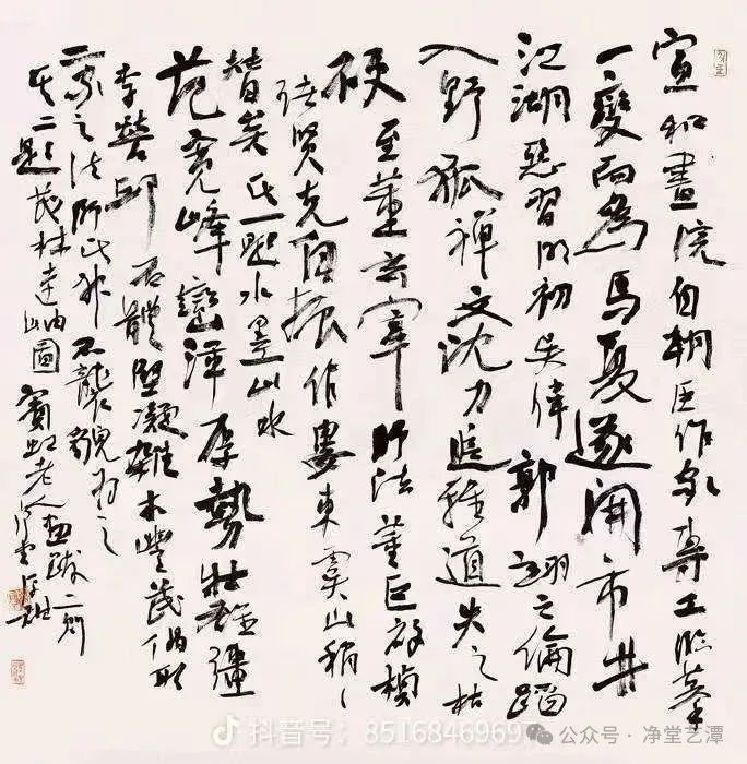 况且我在这里给大家传递要求,我以我几十年书法学习的经验,书法就是线条,很多人说是点画,我就觉得那种否认点画是线条的一种形态的人,他肯定有问题。它可以是点画,但是更是线条,你要知道真正到了汉以后文字系统才开始有点画的,甲骨文里面有点画吗?金文里面哪有点画,给天地之接的时候没有,我们只要赋予它点画,你就把它固化了。我们要活化,而不要固化,要赋予它生命而不要把它的灵性给磨灭。所以说超越点画来认知书法,肯定比那种简单的把自己固化在点画上面的认知,我觉得要科学得多。所以说你们一写字就是写的点画,你肯定画画用不上啊,你画画的哪一笔是点画呢?哪一笔是撇哪一笔是捺呢?你超越了点画,所有的线条的摩擦,这个一下就进入了你运用的体系,你把自己世界要变大,而不是缩小,把这围墙要去掉,而不是竖起来。我既有我的出发点,还要拓宽它的辐射面,这才是做学术一个健康的状态。