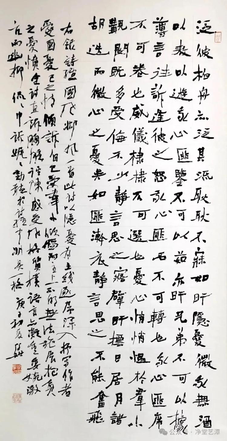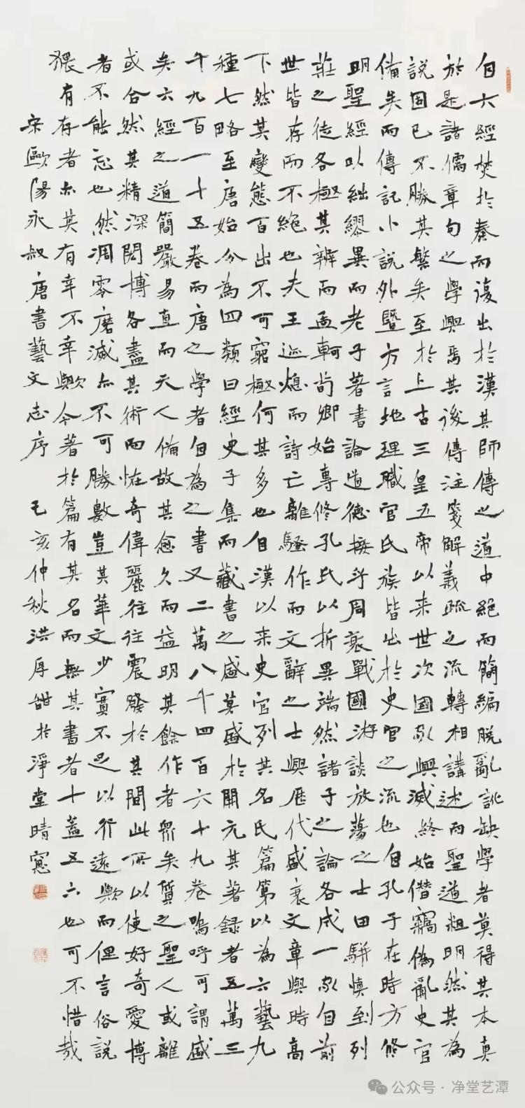 那么楷书系统的伟大在哪里?它赋予了每一个流动过程中的线的形态一个独立的内涵和内容,点画撇就是撇,捺就是捺,这个时候你要知道没有行草书的势的固化,就没有楷书的点画,所有的点画都是行草书势的固化。所以说楷书的点画是不能变移的,隶书的点画是可以置换的,在篆书里边很多字从背面看正面看都是一个字。在楷书里面左右都不能动,第一第二第三横都不能动,这就是势的规定。这个势的静态化、固化就成了楷书,楷书反过来又赋予了这个线条里边更丰富的空间意识,和它的个性化特征,所以唐代孙过庭就说楷和草、草和楷正好是相反的,一个是点画为形质,使转为情性,一个是使转为形质,点画为情性,它们两个一下就是不同的形态,一个是靠动来实现它的存在,一个是靠静来实现它的存在。所以说进入了五体书的学习,才真正的进入了这个传统的体系、全部的体系,这我们说的传统就是这个,不是说你今天写像了米芾就是学到了传统,今天学到了八大山人,学到了弘一,学到了乙瑛碑就继承了传统,那不是笑话嘛。你有一条牛尾巴就说我家里有头牛,你买了一只猪蹄就说我买了一头猪,你不是叫别人都觉得笑话。局部不是整体,但是整体肯定是最后要在局部上来体现。你写楷书就不可能写行草,你写行草就不可能写楷书,你写草书就不可能写隶书。但是隶书里边可以有草意,我们现在写篆书是包含了对二王的技术体系的回复性运用,就是我暗含这个技术,那么我就不是古人的那个态,古人那个时候还没有。我们的社会进步是整个社会文化的进步实现的,社会的艺术的跨越也是随着整个人类整体的科技进步、文化进步而实现的。我们现在看到的书法是书法,但不是古人眼里的书法,我们感知到的书法也是我们当代人感知到的书法形态,坐过飞机的人看天地,跟没有坐过飞机的人看天地不一样吧,坐过高铁的人跟走路的人来理解这个世界,会是一样的吗?肯定不一样。用我们的生命去解读我们既有的传统,去呈现传统学术里面重要的学术元素和学术的价值点,就是我们这一代人应该做的。在此基础上做的生发和创造,一定会凝结为我们这个时代留给后人真正的财富和新的传统。